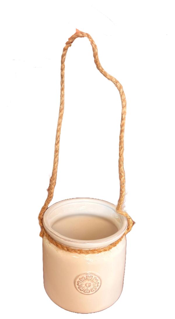 PEL MACETA CERAMICA BEIGE Y BLANCA 17*14